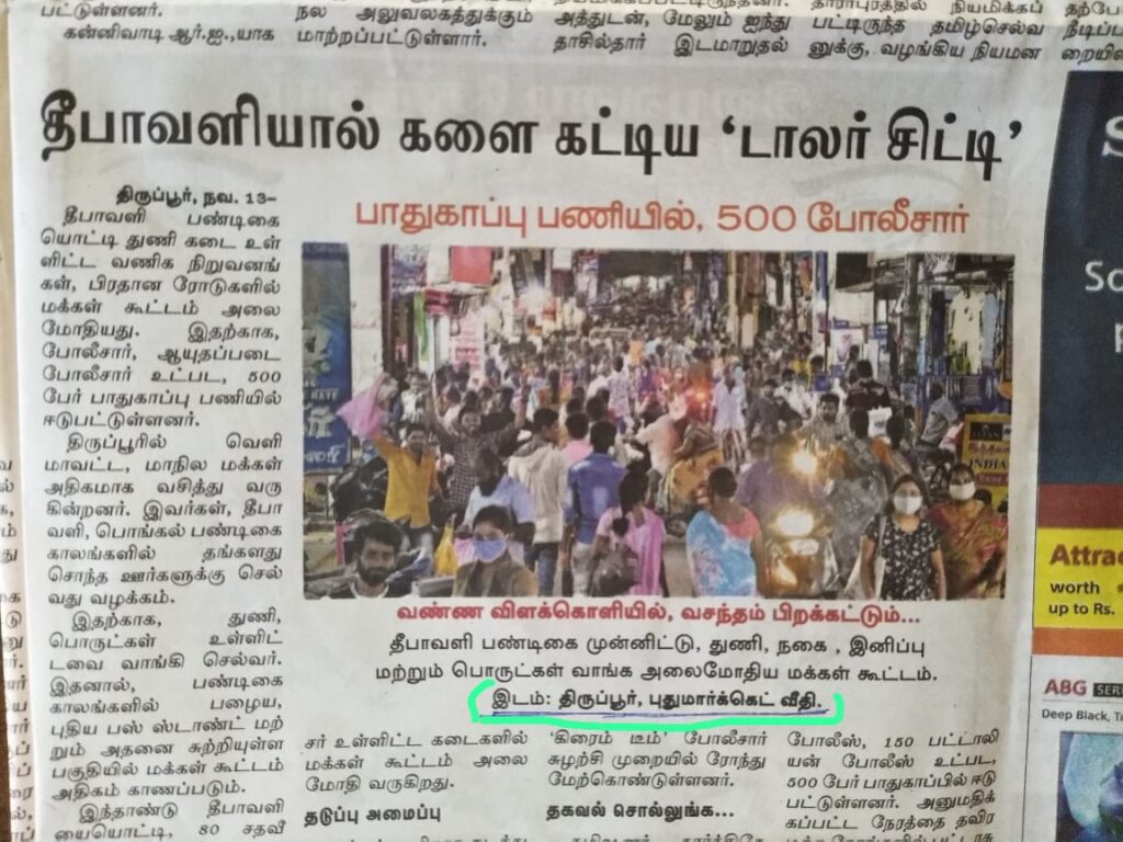 திருப்பூரில் அதிக வியாபாரம் நடக்கும் வீதி ‘புது மார்க்கெட் வீதி’.